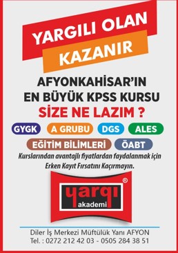“Ülkemizin önde gelen üniversitelerinde yetişmiş, eğitimciliğini her şeyin önünde tutan, gösterdiği başarılarla kendini kanıtlamış öğretmenler tarafından kurulan ve kadrosunu bu standartlara göre oluşturan AFYON YARGI AKADEMİ; bugüne kadarki kalıpları aşarak öğrencilerine hayatlarının en unutulmaz öğrenim tecrübelerini yaşatıyor.”